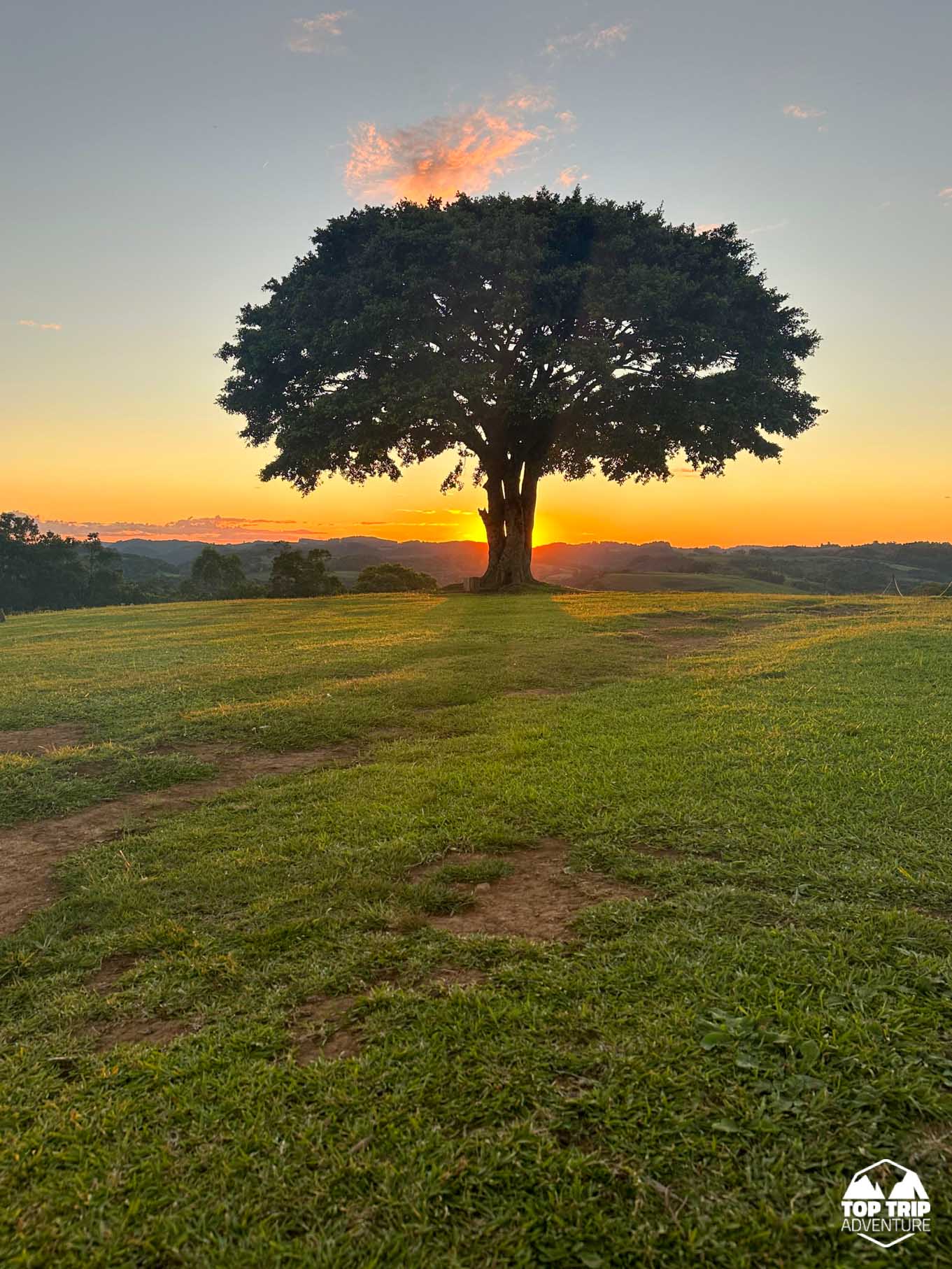 Nossa hospedagem será com acampamento (traga seus equipamentos) em um local com estrutura de banheiros e chuveiros. E prepare-se para um visual magnífico de frente para o Cerro Branco, um dos maiores morros do RS (veja as fotos abaixo).