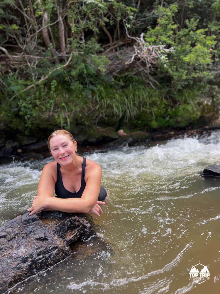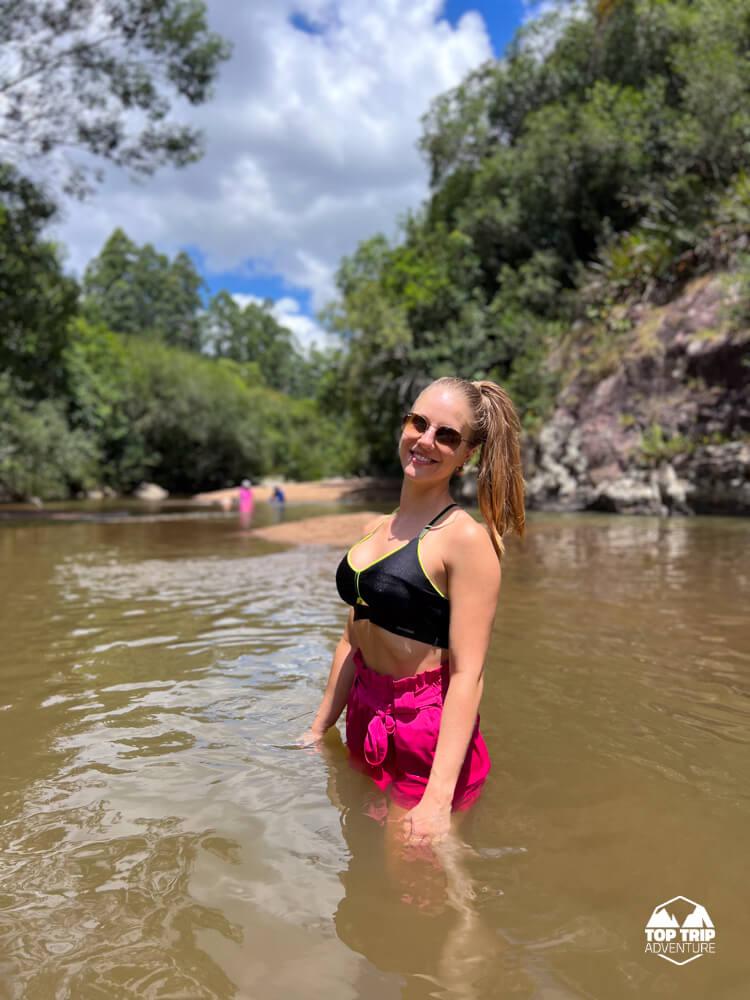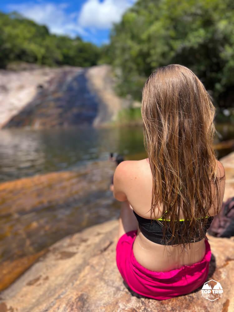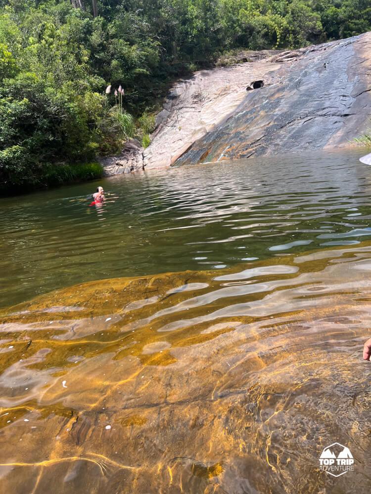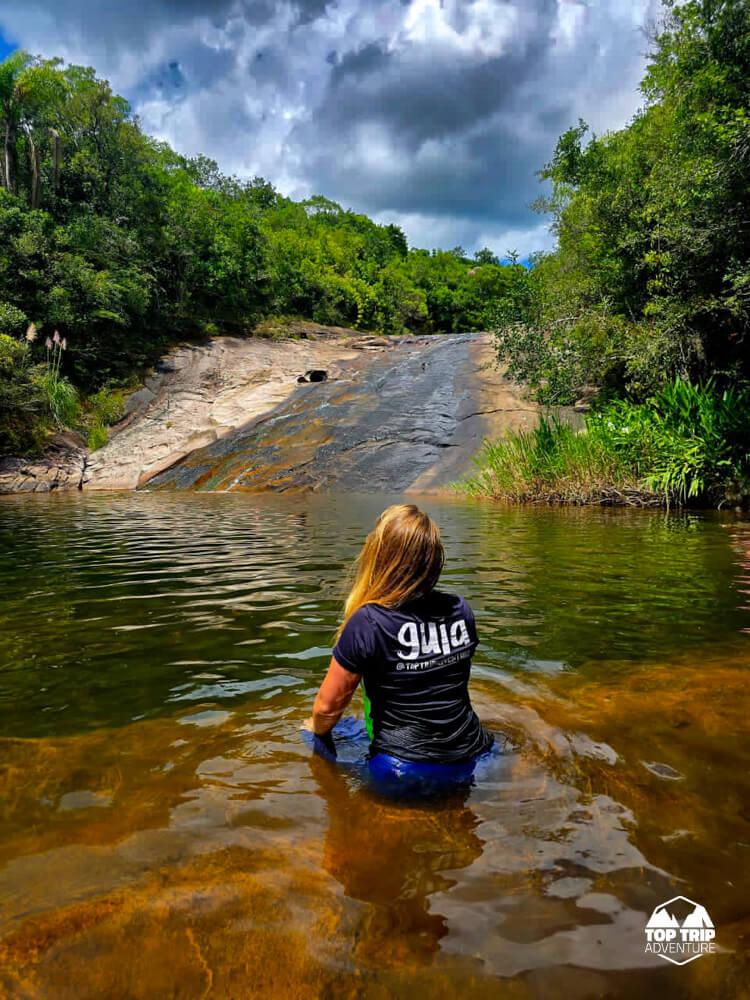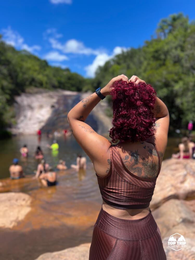 O esforço da trilha é recompensado na chegada: a cachoeira se revela com um poço de águas cristalinas e, o ponto alto do local, uma prainha de areia natural. Este cenário incrível é perfeito para um banho revigorante e para relaxar após a caminhada, um verdadeiro paraíso escondido. Prepare-se para recarregar as energias nesse recanto!