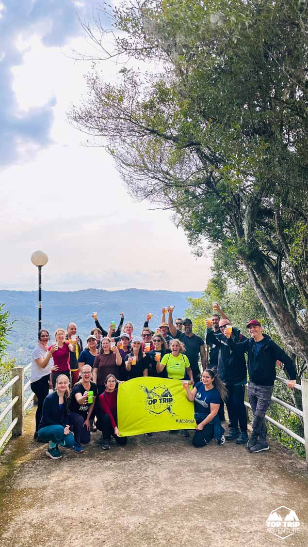Imagine-se explorando a região e, na metade do caminho, desfrutando de um chope artesanal gelado por nossa conta! Para completar essa experiência revigorante, nosso roteiro inclui uma parada estratégica em um mirante com uma vista panorâmica espetacular dos vales verdejantes e morros ondulantes que emolduram Picada Café.