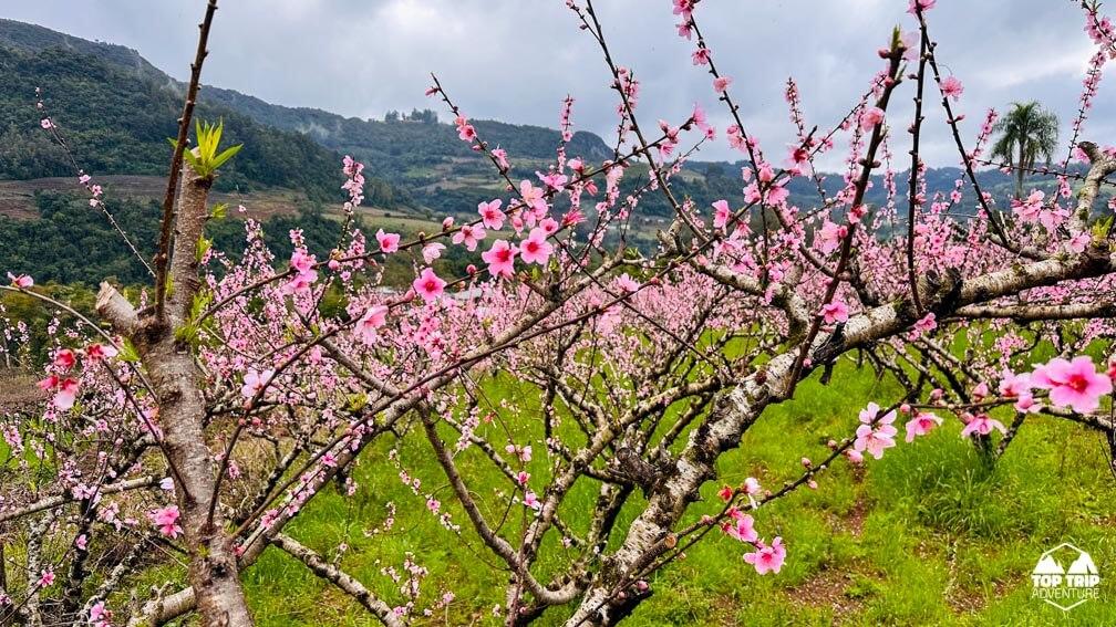 Prepare-se para uma experiência sensorial única, quando a Serra Gaúcha se transforma em um espetáculo de cores e aromas! Nossos pessegueiros florescem, pintando a paisagem com tons vibrantes e criando um cenário de tirar o fôlego. A floração ocorre somente neste período do ano!