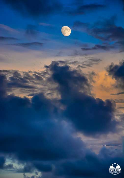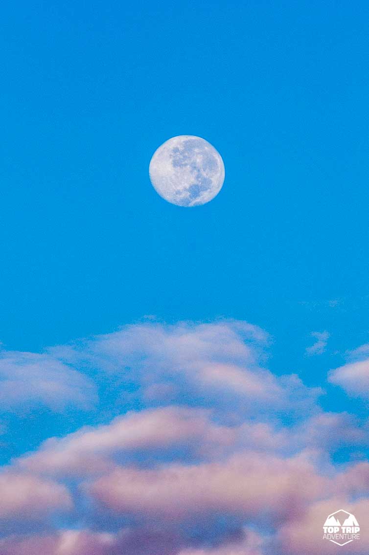 A caminhada começará ao entardecer com chances de ver um belo pôr do sol à espera da Lua Cheia nascer!