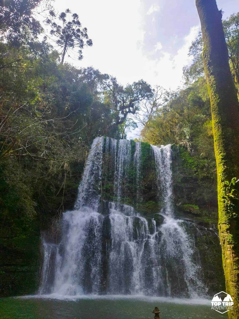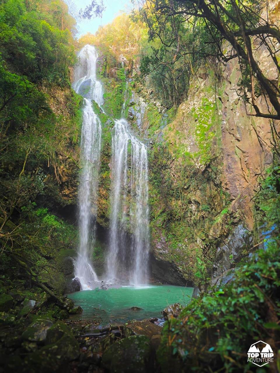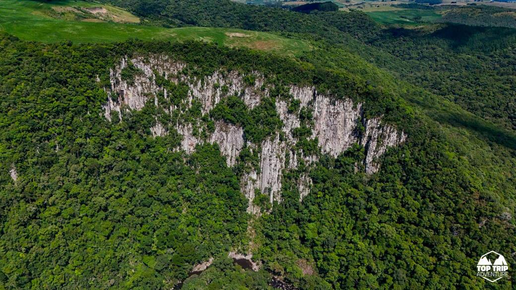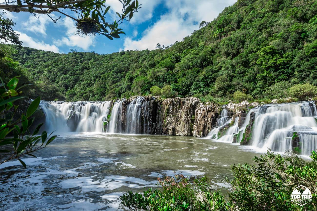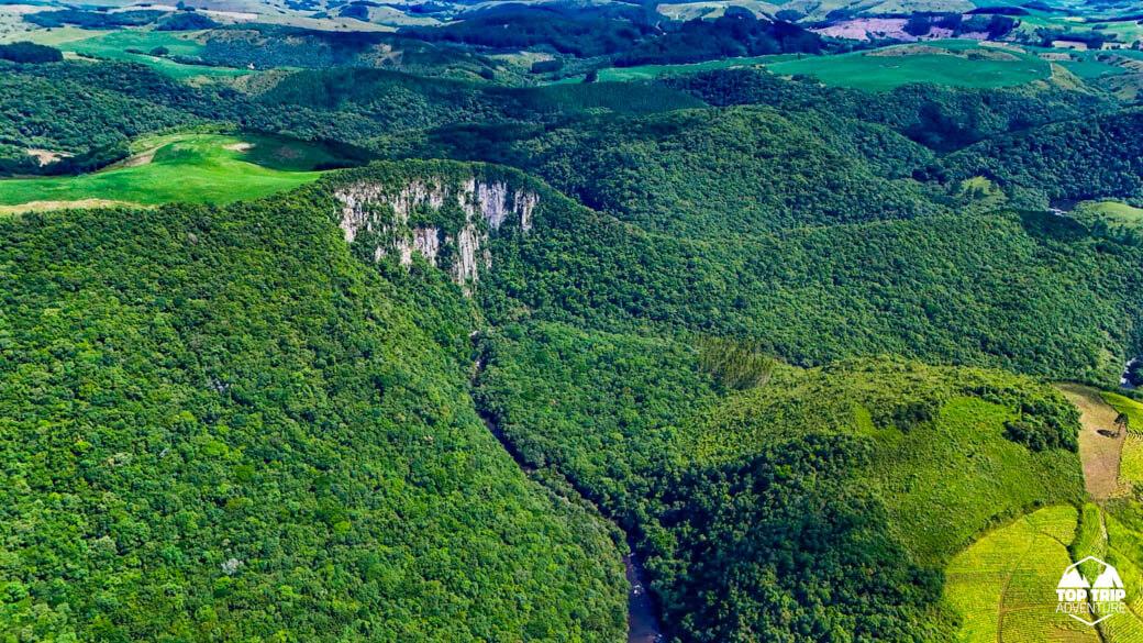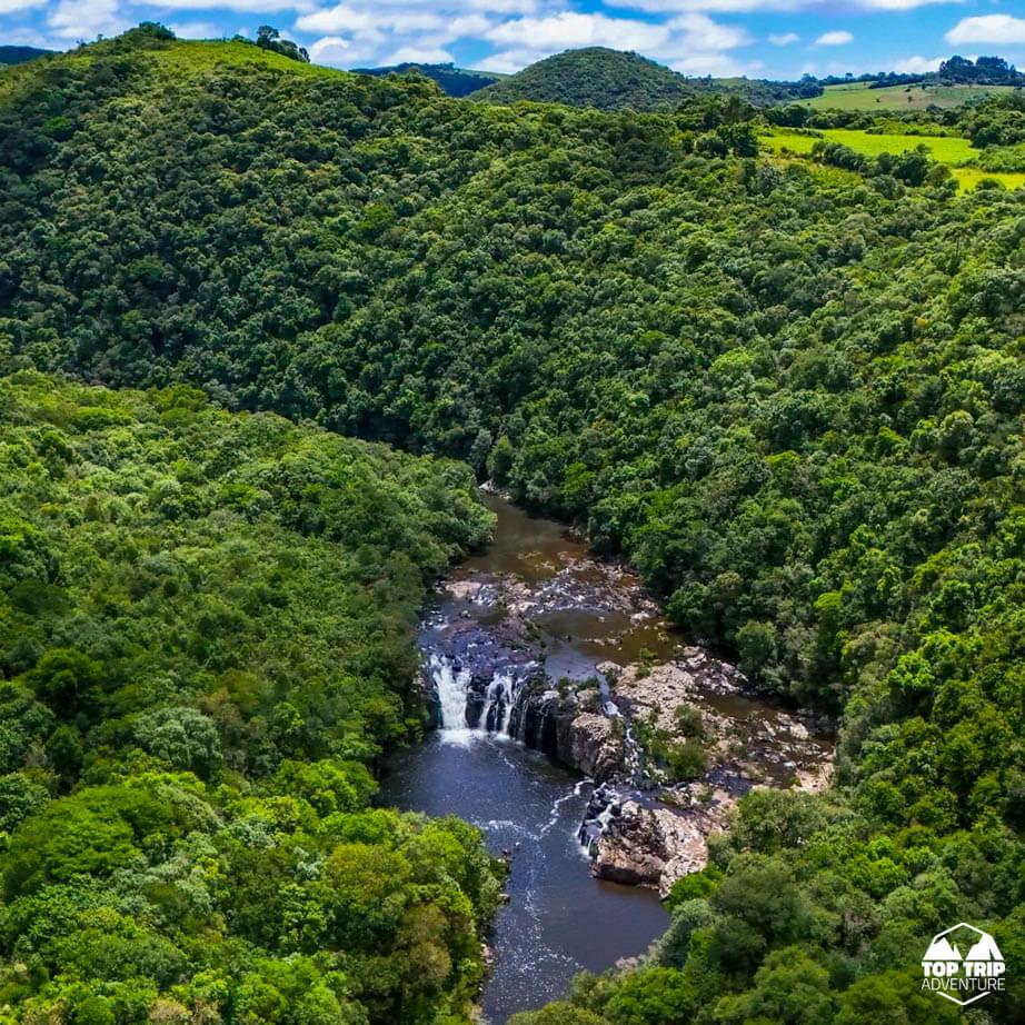 Considerada a Cascata mais linda do RS. Um cânion incrível com uma queda d’água de 80m separada em duas cascatas em seu interior. O Arroio Figueirinha desce pela encosta do cânion formando as quedas.