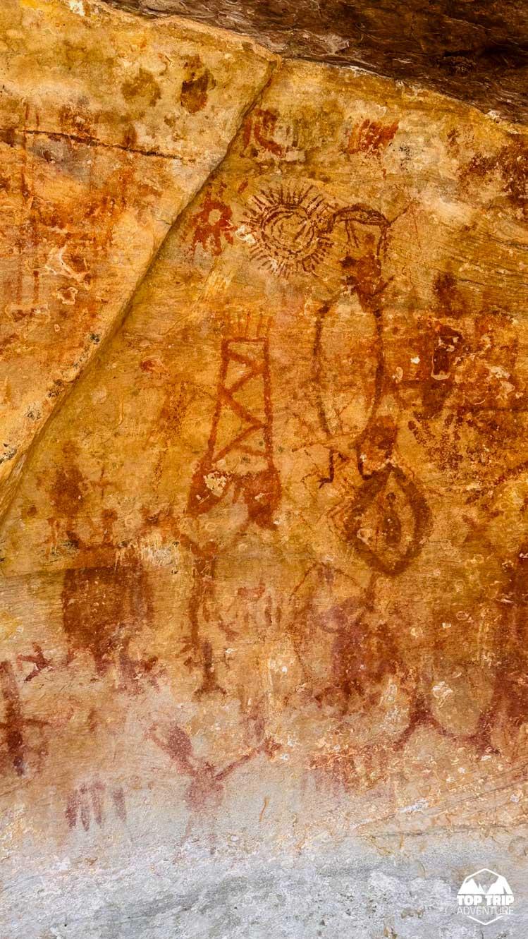 Neste dia o visitante observará cenas de arte rupestre de cotidiano, cenas de famílias com crianças como também pinturas abstratas geométricas. Pinturas datadas de 9 mil anos atrás. O visitante também observará o melhor da paisagem da Serra da capivara de Cânions e vistas panorâmicas que nos lembram uma Capadócia da Turquia.