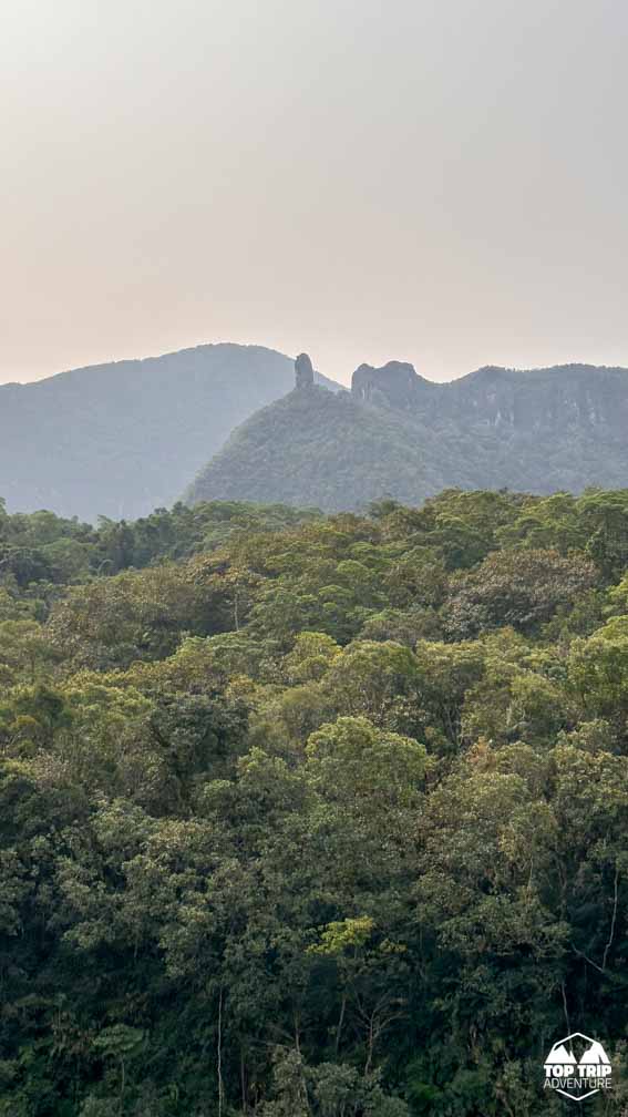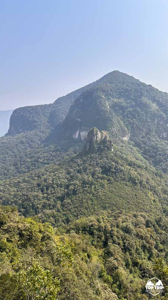 Dois Dedos tem esse nome pela dupla rocha de 50m que fica situada ao final da trilha e que de longe aparenta serem dois dedos erguidos de uma mão. Do alto do pico é possível ter um visual de 360 graus das escarpas da Serra Geral e da Reserva do Aguaí – muita vegetação de mata atlântica.