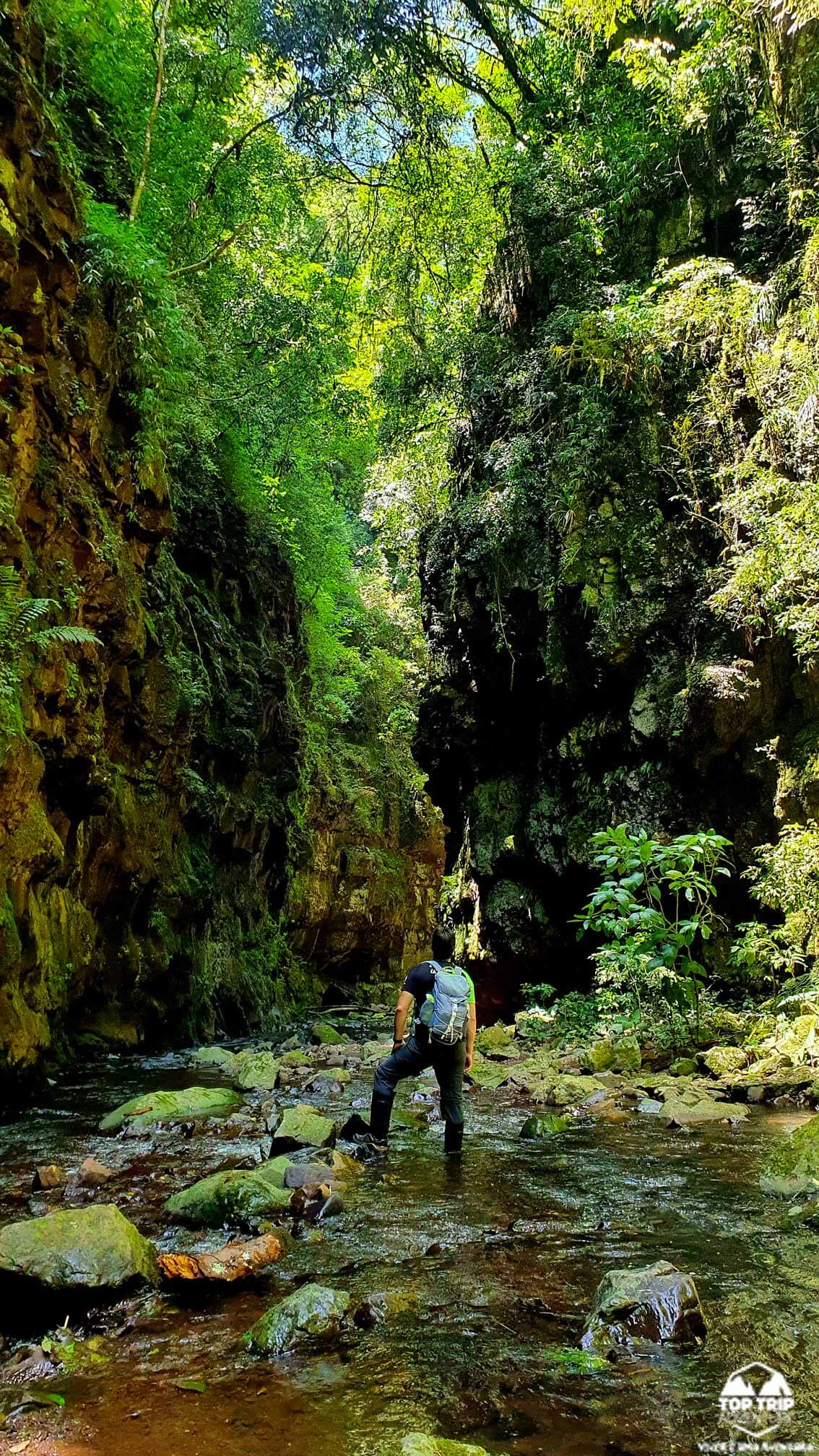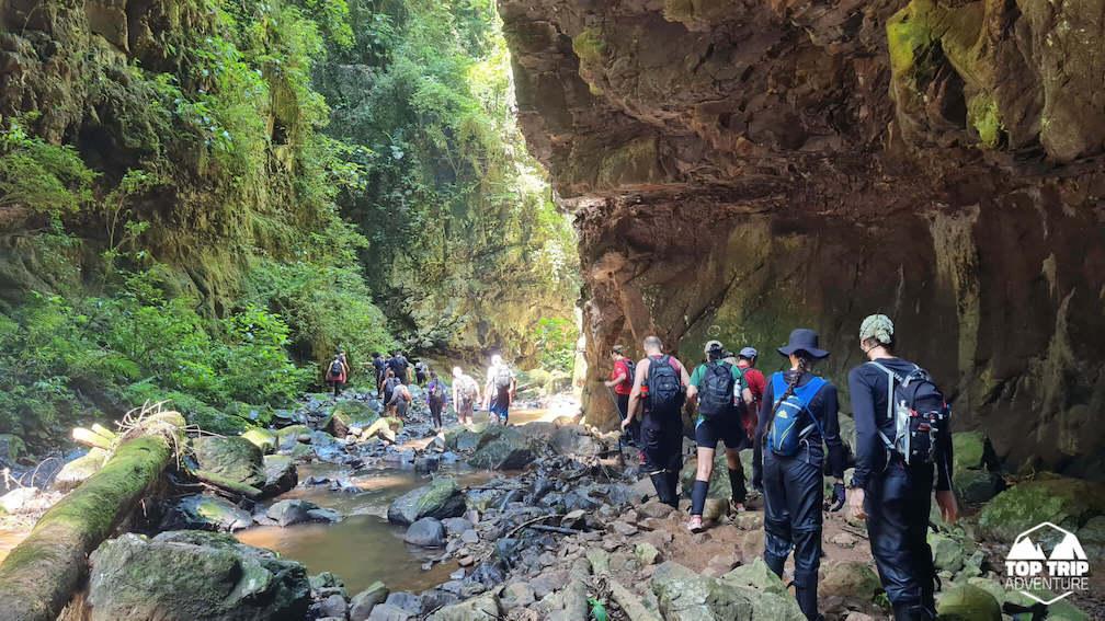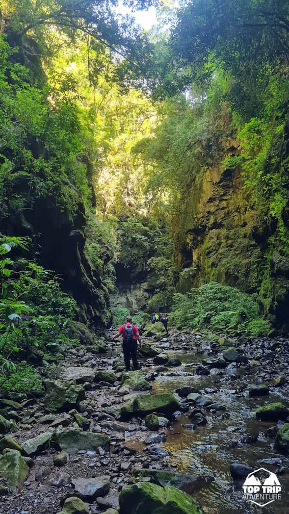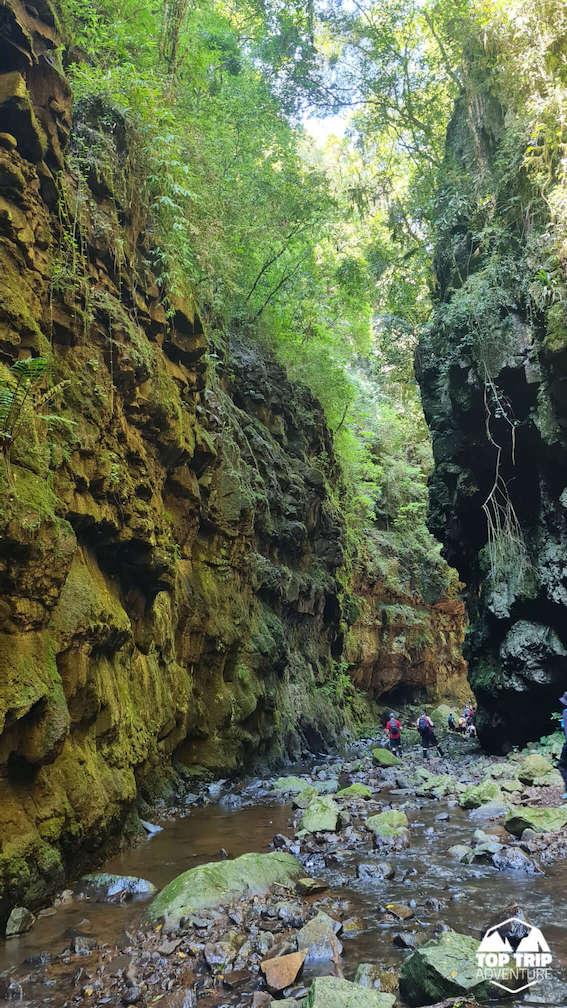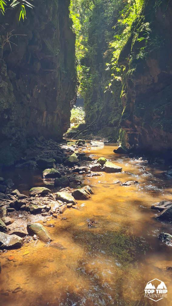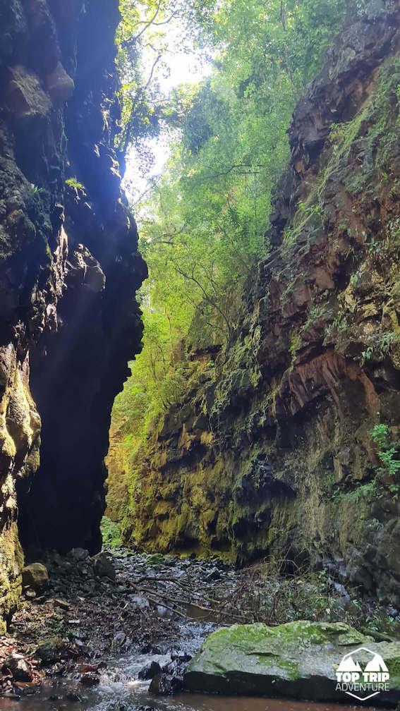Nossa caminhada começará por estradas rurais, passando trilhas em meio a mata. Cruzaremos riachos, até entrar no cânion onde vãos entre as paredes serão de pouco mais de 10m. Até chegarmos a grande cachoeira do Gavião Faiado!