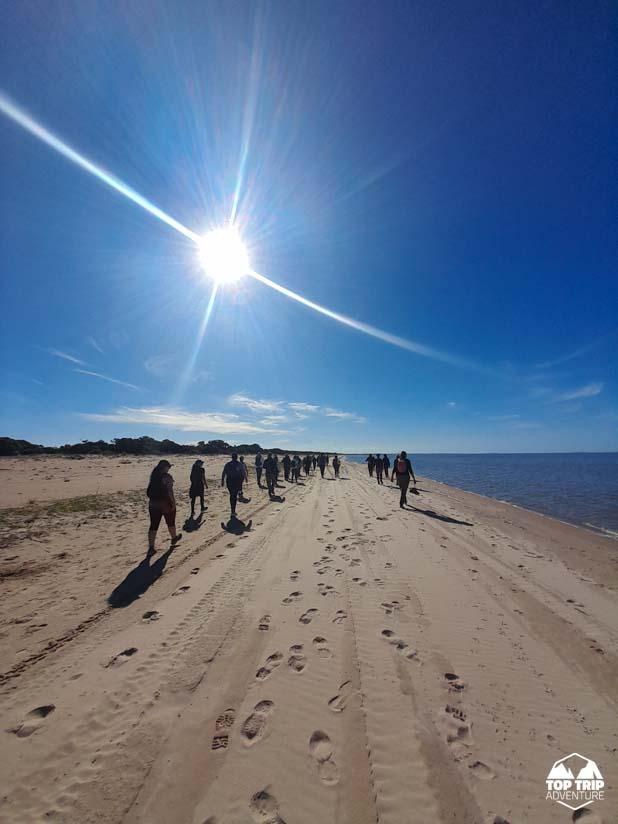 Caminharemos por 13km em terrenos de areia e estradas rurais. Subiremos dunas e tomaremos muito banho na Lagoa dos Patos! Além de presenciarmos um pôr-do-sol espetacular!